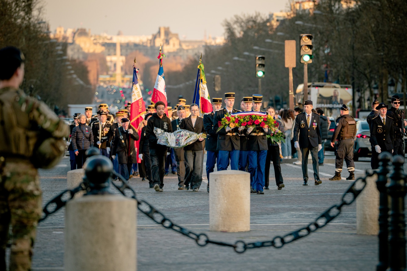 Chaque soir, sous l’Arc de Triomphe, se tient la traditionnelle cérémonie de ravivage de la Flamme, moment fort de mémoire et de recueillement. Ce mercredi 4 mars, en tout fin d’après-midi, la 2ᵉ compagnie d’instruction d’élèves-gendarmes de l’École de gendarmerie de Chaumont, 536ᵉ promotion “Gendarme Eugène Émile Lebreton”, était présente pour participer à cet hommage solennel rendu à celles et ceux tombés pour la France.